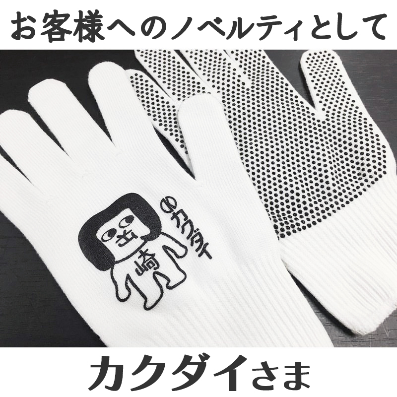 13ゲージ軍手等でも製造可能ですが、ラバー印刷専用の軍手「合繊軍手」等を使用すれば安価に名入れ軍手をつくることが可能です。