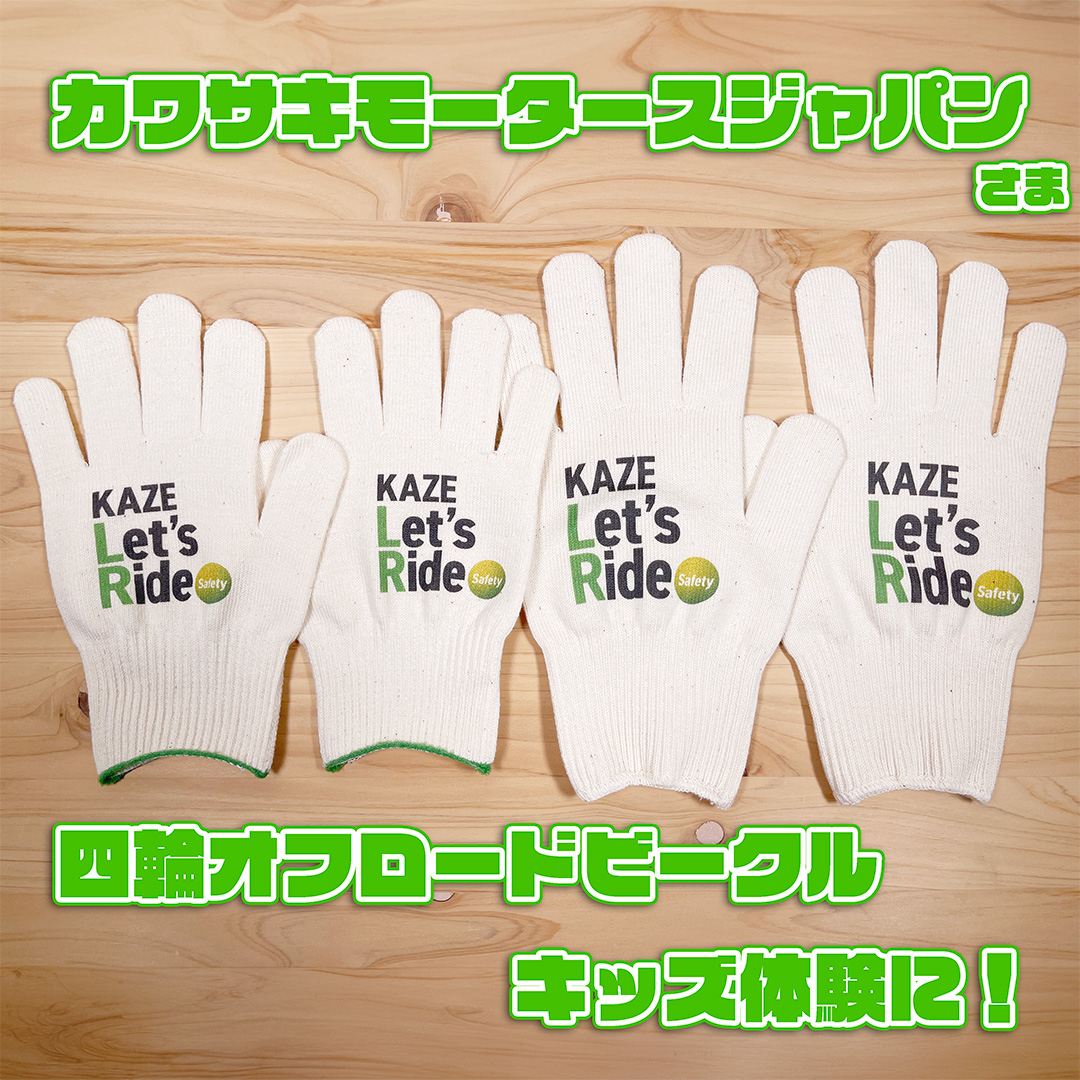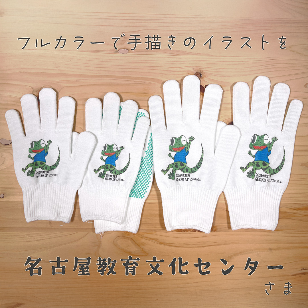 7ゲージ軍手・13ゲージ軍手・カラー軍手や背抜き手袋( こちらは印刷色:黒のみ )など幅広い種類の手袋への印刷に対応しています。