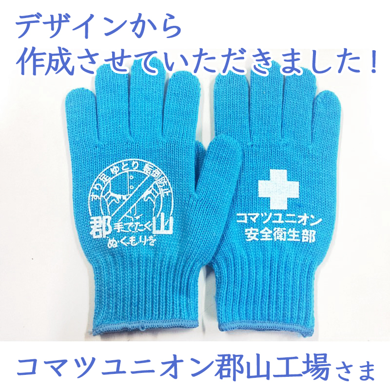 弊社でお取り扱いの軍手各種に、オリジナルでプリントを行うことができます。