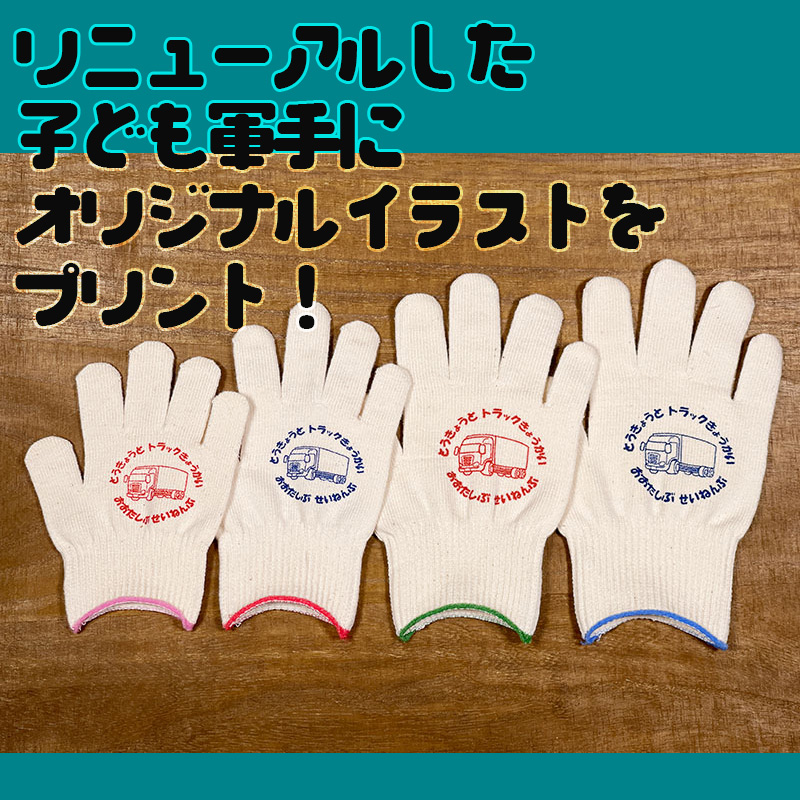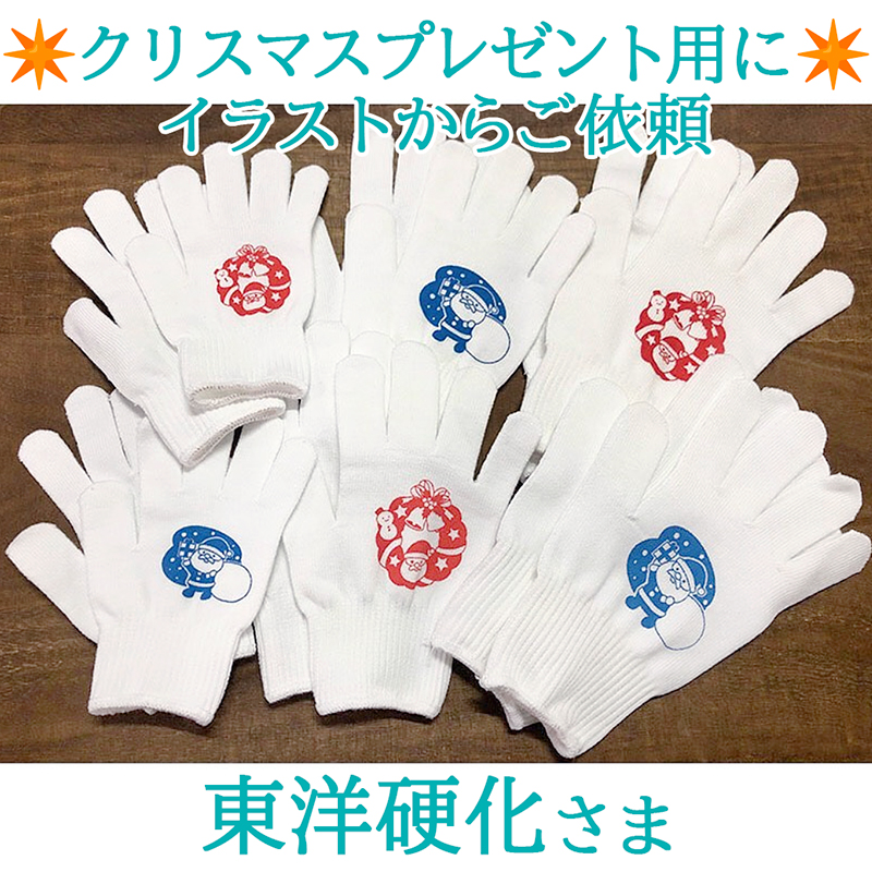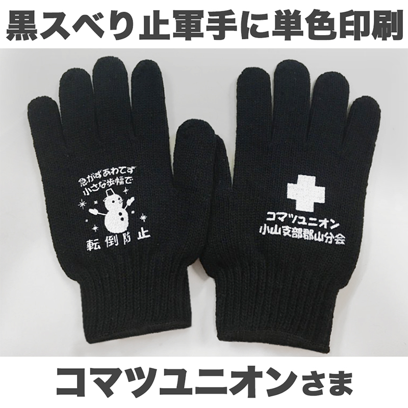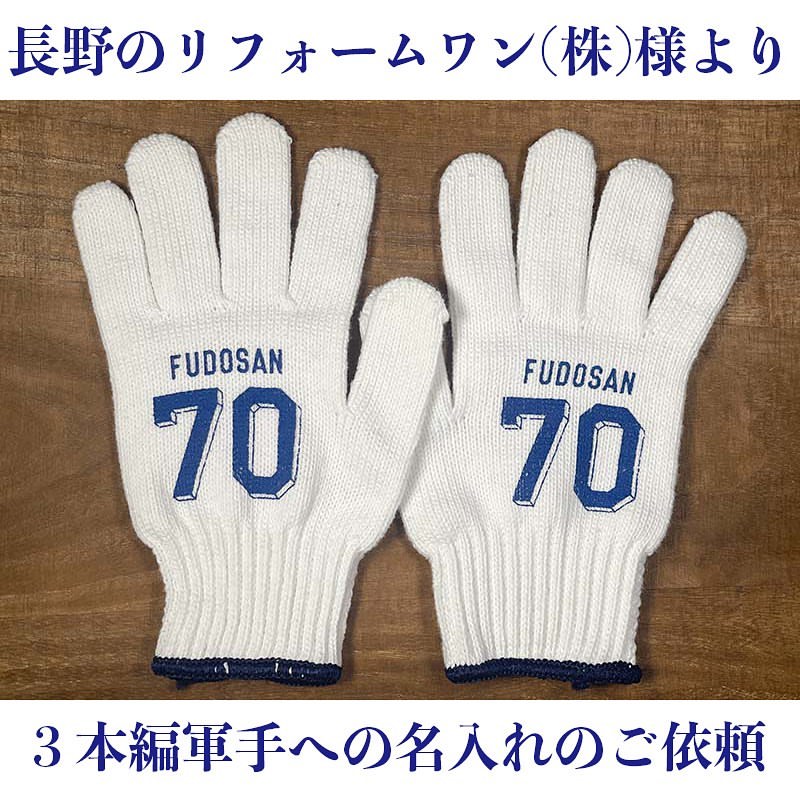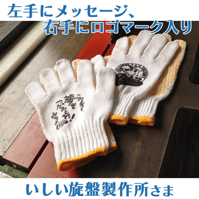 いしい旋盤製作所さまより年末年始の挨拶用の品として左右で異なる図柄をプリントした会社オリジナル軍手のご注文を頂きました。 使用した手袋の種類は【 スベリ止め軍手 】です。