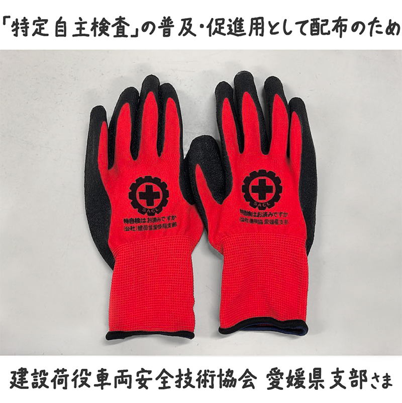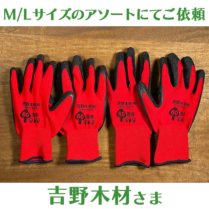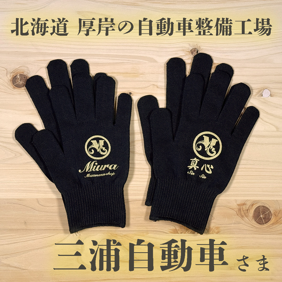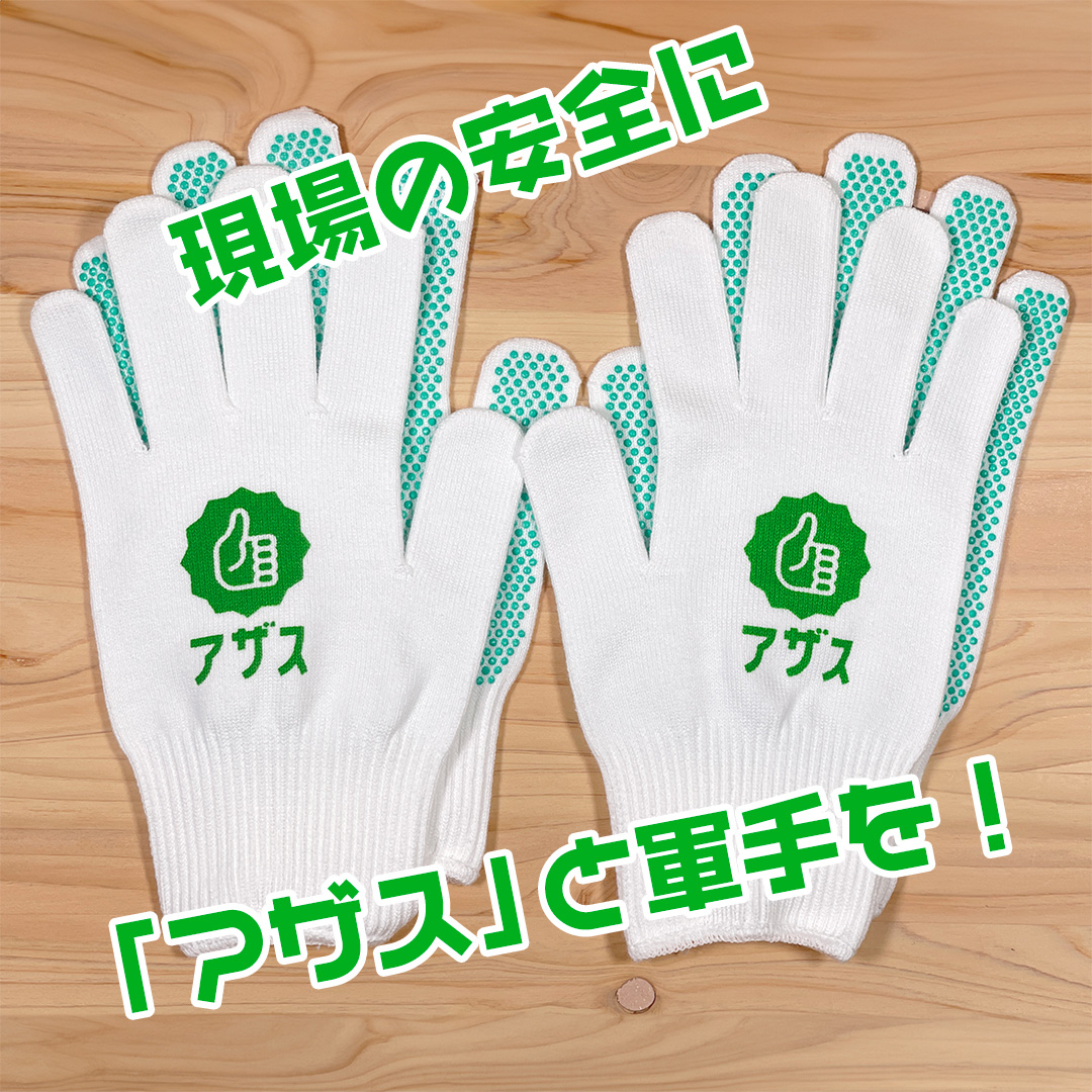 いしい旋盤製作所さまより年末年始の挨拶用の品として左右で異なる図柄をプリントした会社オリジナル軍手のご注文を頂きました。 使用した手袋の種類は【 スベリ止め軍手 】です。