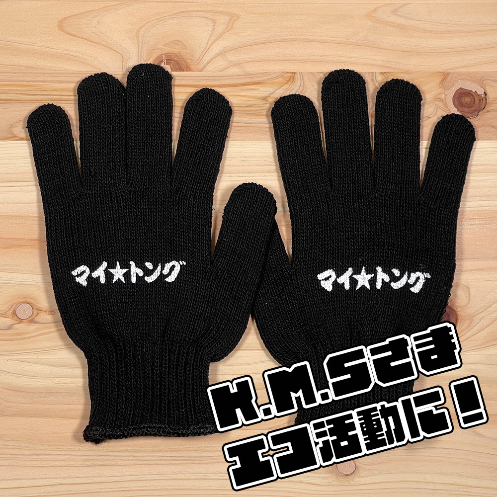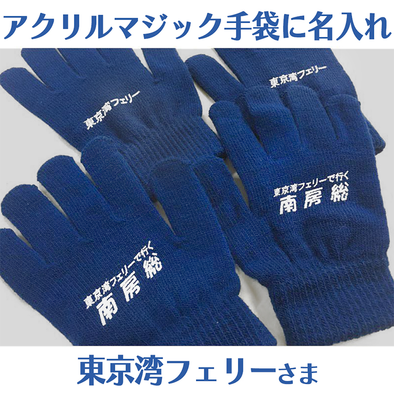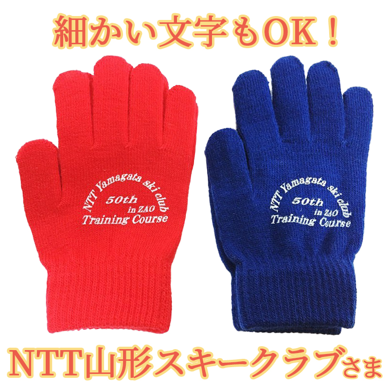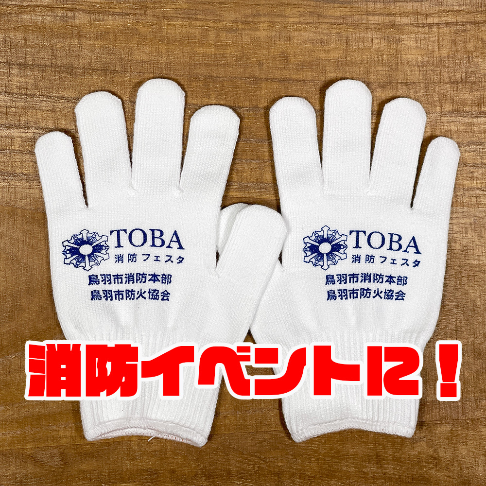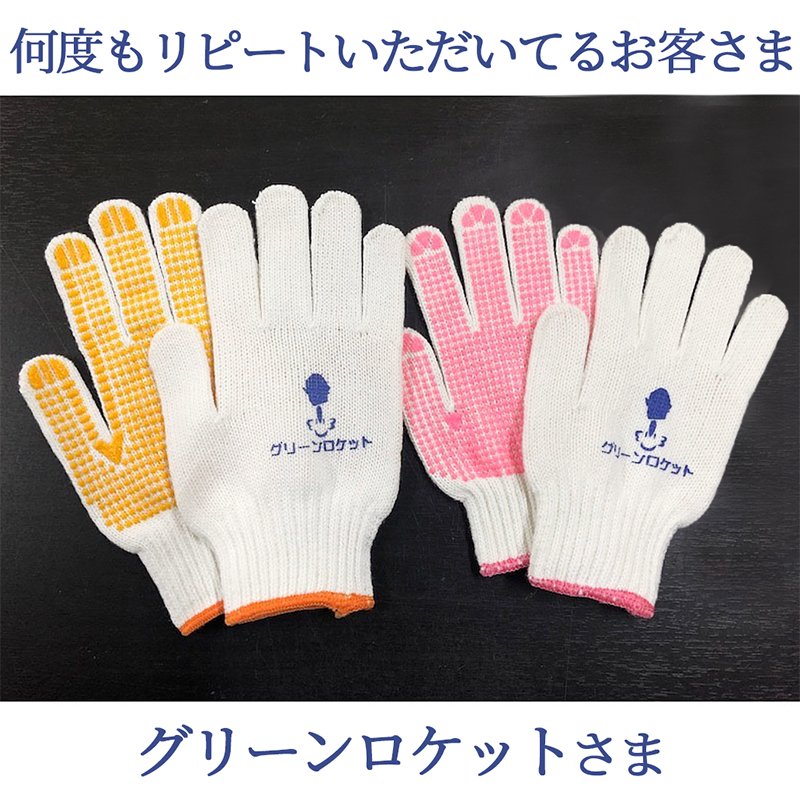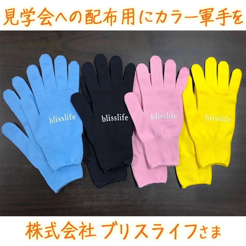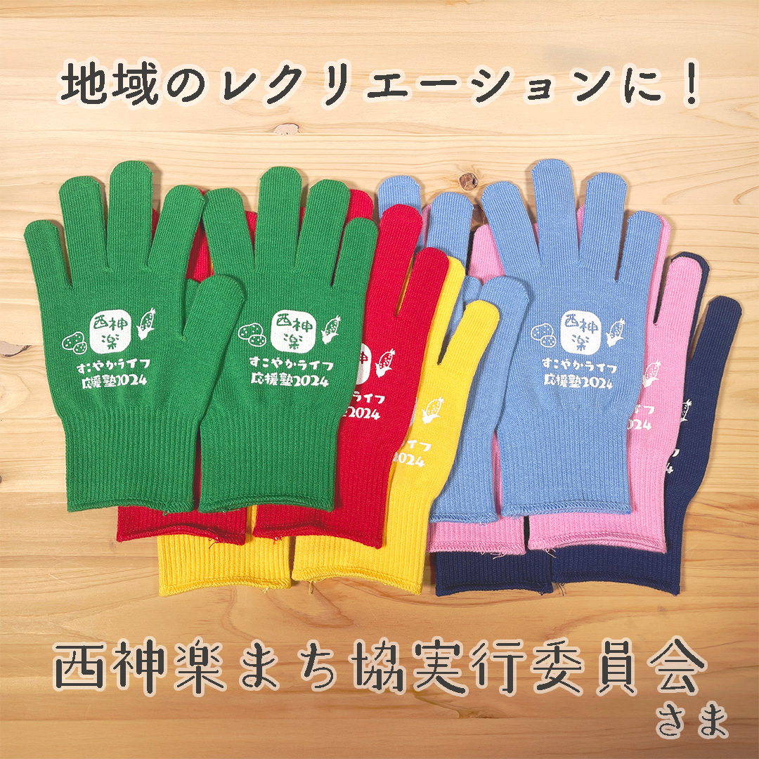 イベントで大活躍!カラフルな残糸の軍手に名入れをしました。 使用した手袋の種類は【 残糸軍手 とっとっ手 】です。