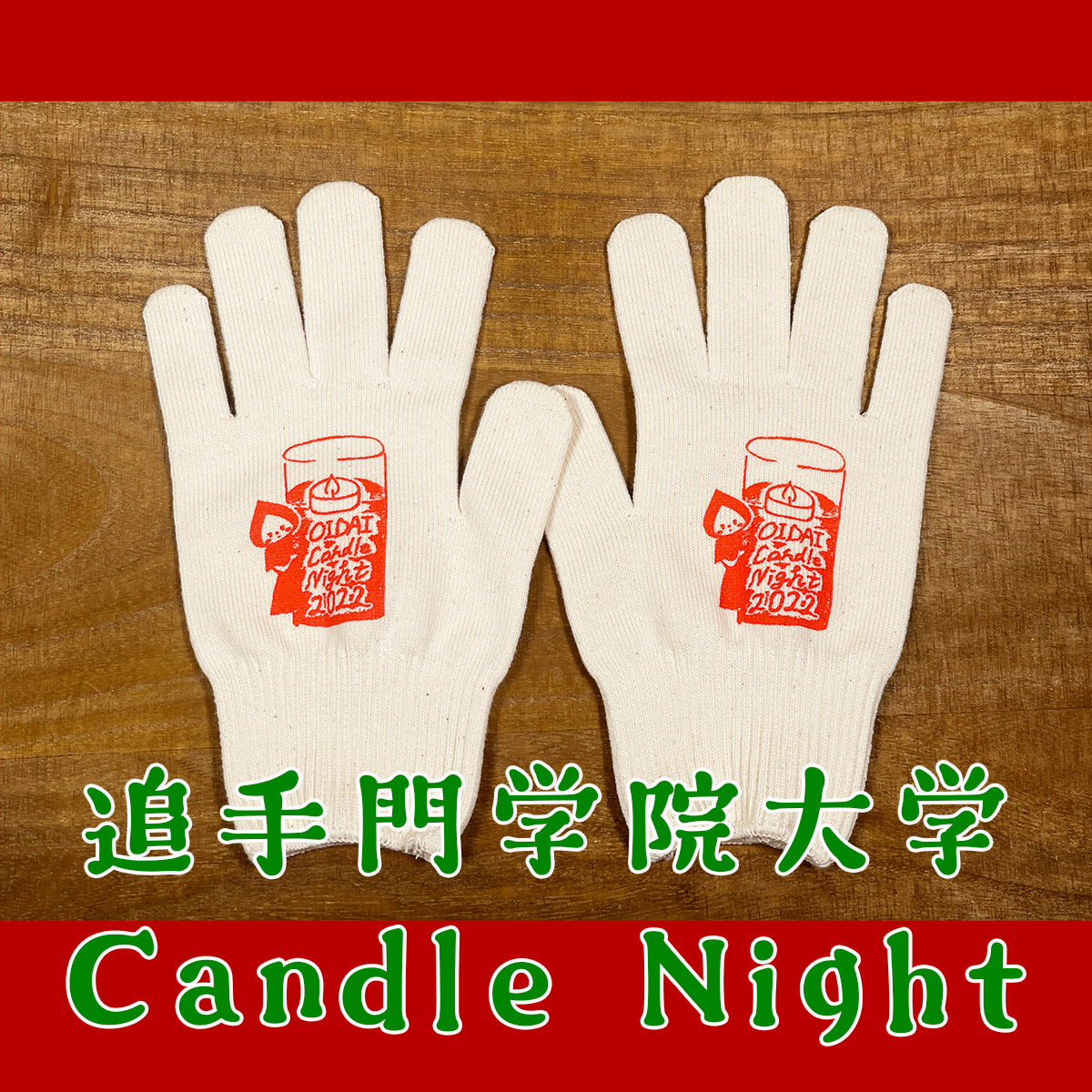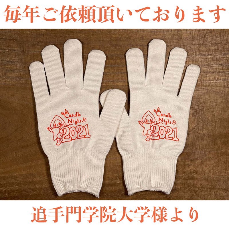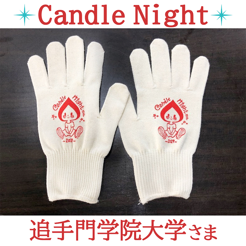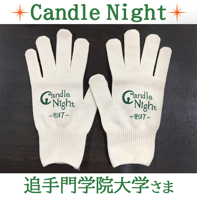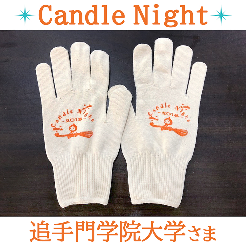 毎年オリジナルの軍手を製作させていただいております追手門学院大学さまのキャンドルナイトというイベント、今年も軍手のご注文をいただきました。 使用した手袋の種類は【 017 綿のびのび手袋 生成 】です。
